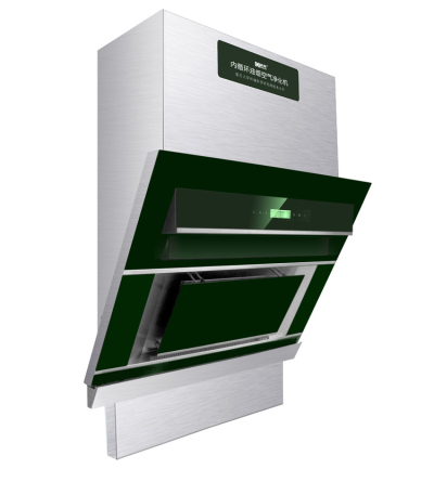 【無煙管內循環吸油煙機】:可在任意單獨的空間內進行循環處理凈化,類似一臺特殊的空氣凈化器,在烹飪操作時作為油煙氣體凈化機,操作完畢讓其繼續工作,它將室內生活污染的氣體進行深度凈化,實現一機兩用的功能。